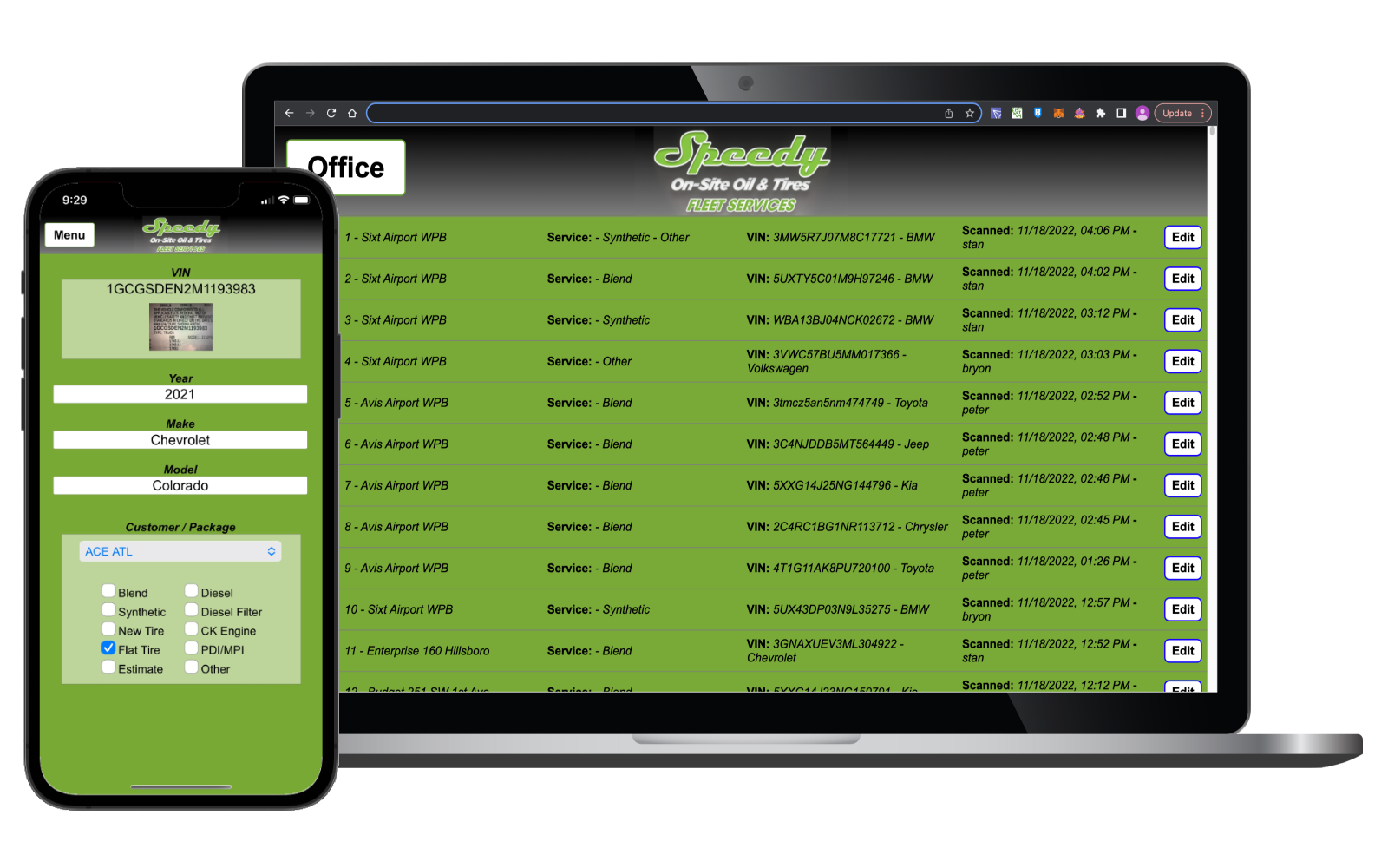 SquirrelyTech worked with Speedy Fleet Services to create an app which keeps track of all the automobiles they service.
